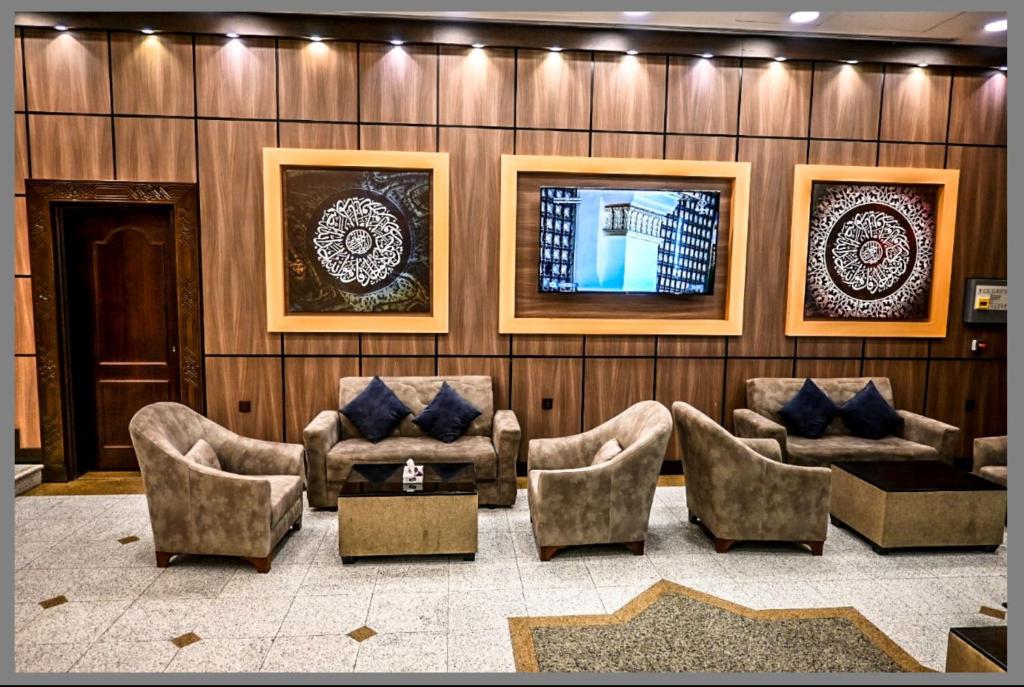 مناطق جلوس مريحة في بهو الفندق للاستراحة أو استقبال الزوار.