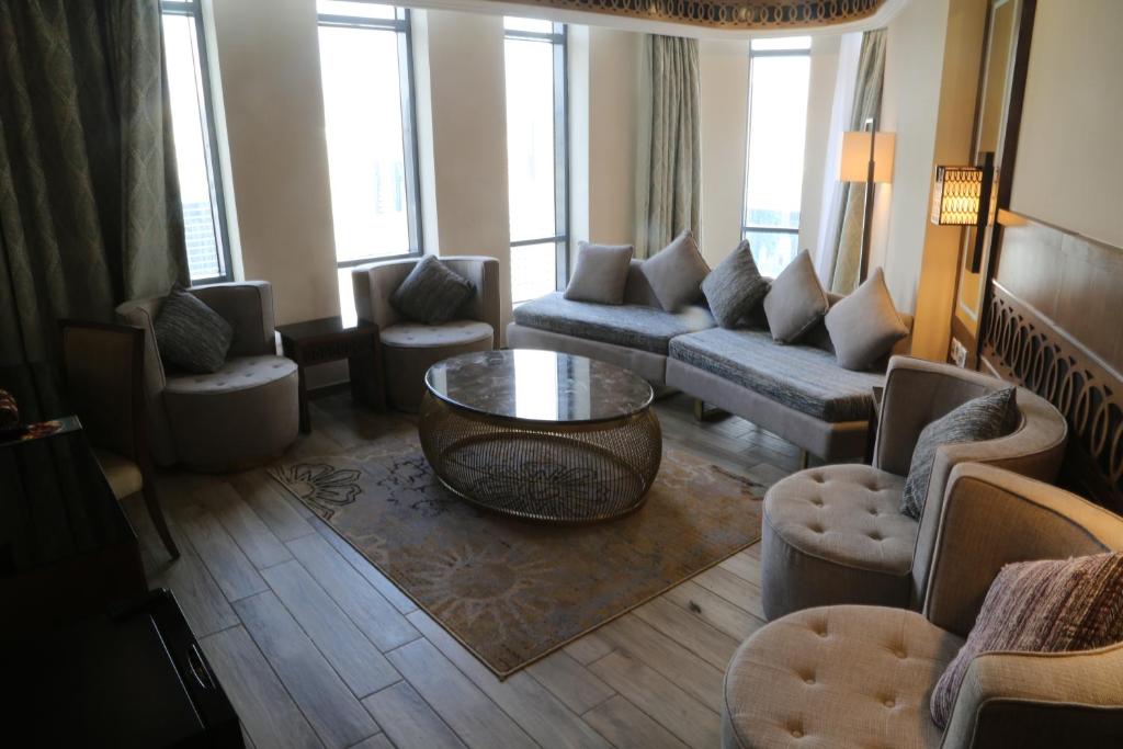 تضم بعض الأجنحة غرف معيشة منفصلة لإقامة أكثر رفاهية، مع إطلالات رائعة على المدينة، مما يزيد من متعة الإقامة ويجعلها تجربة لا تُنسى.